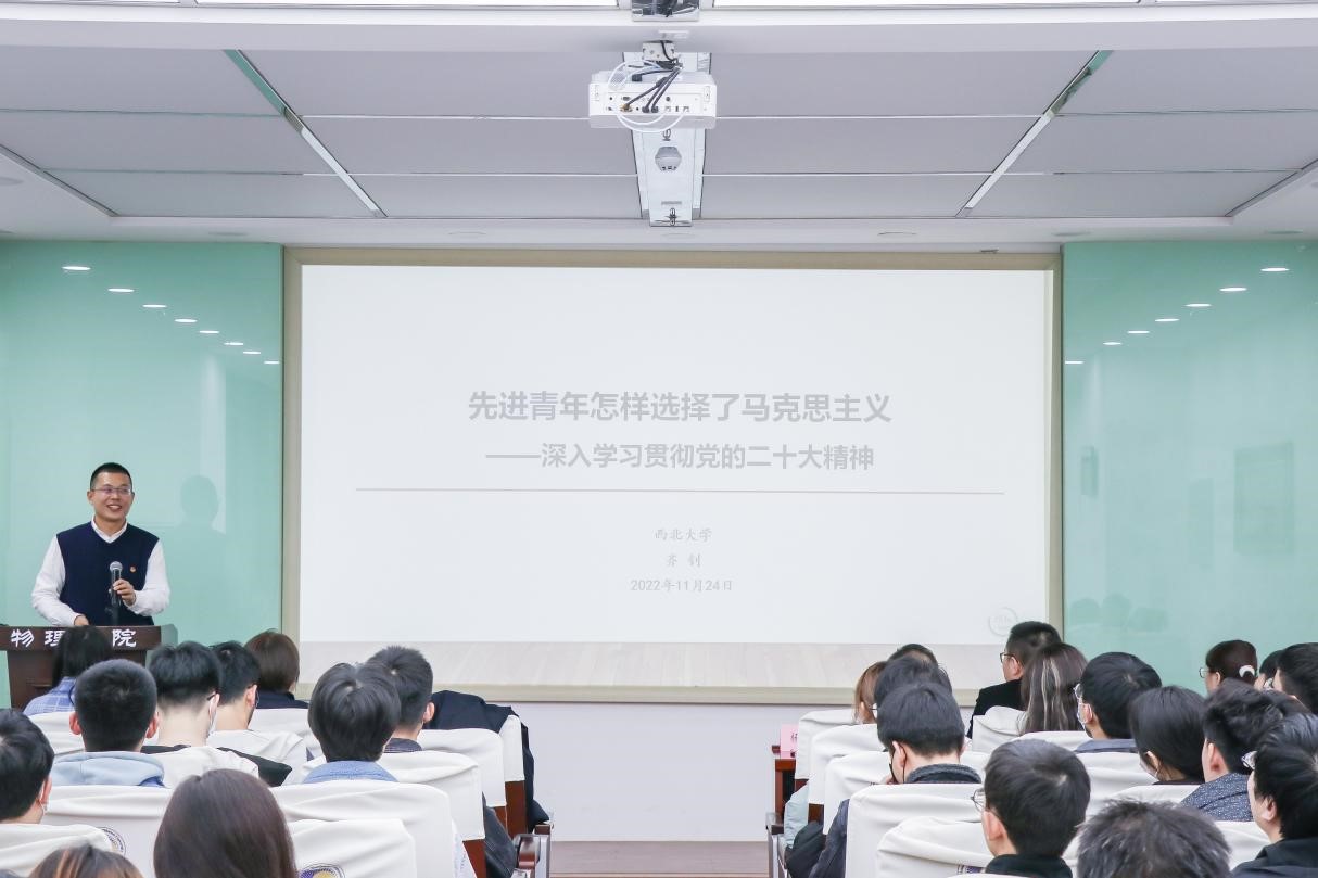 开班仪式结束后,校团委副书记齐钊副教授以《先进青年怎样成长为马克思主义者——深入学习贯彻党的二十大精神》为题向同学们讲授了开班第一课。齐老师从“中国共产党为什么能,中国特色社会主义为什么好,归根到底是马克思主义行,是中国化时代化的马克思主义行”引出,以“社会主义的提倡、社会主义的实践、社会主义的捍卫”三个层面出发,通过历史发展的角度讲述了中国先进青年选择并坚定马克思主义信仰的历程。他强调,青年是实现中华民族伟大复兴与社会进步的生力军,是党和国家事业发展的接班人,是第二个百年奋斗目标实现的中坚力,大家要肩负起历史责任、进而成为党和人民需要的栋梁之才。