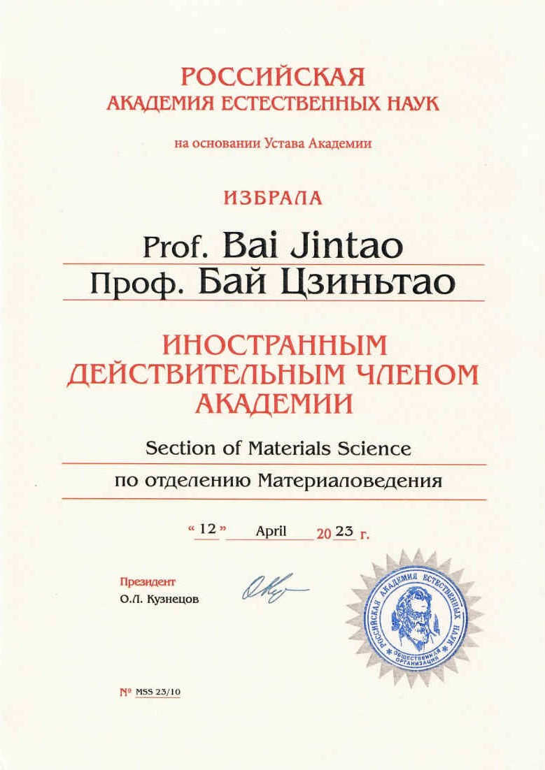 据悉,俄罗斯自然科学院成立于1990年,由俄罗斯多位知名学者及科研机构发起成立,是俄罗斯三大跨行业科学机构之一,也是联合国认可的俄罗斯规模最大的社会性科学院,现有十八名诺贝尔奖获得者、二百七十余名俄罗斯科学院院士、三十多名俄罗斯国家医学科学院院士及二十余名其他科学院院士。必赢白晋涛教授通过院士推荐、形式审查、材料审核、学部选举、主席团审议等流程,当选为俄罗斯自然科学院外籍院士。