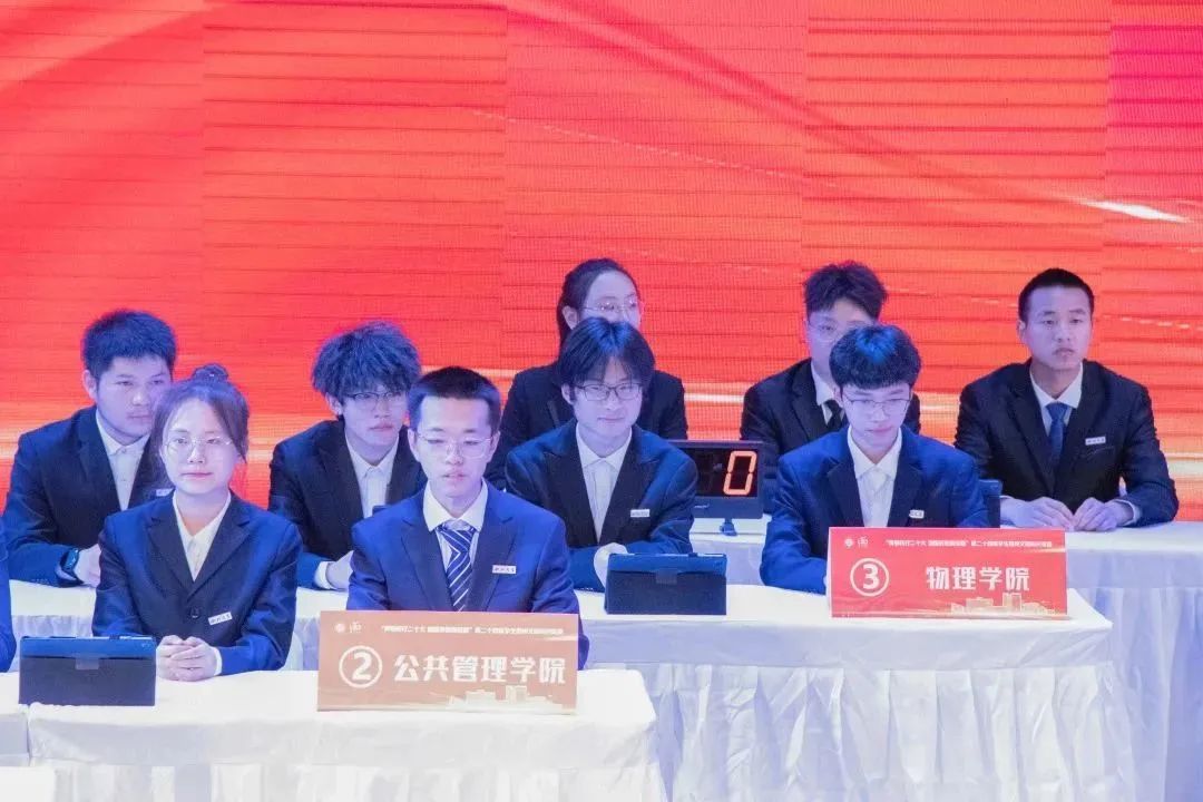 决赛分为必答题、抢答题、视频分析题、风险题四个环节。必赢参赛选手有条不紊,认真作答有关“四史”和习近平新时代中国特色社会主义思想、“校情校史”以及“校纪校规”等方面的题目。在抢答题环节,必赢选手积极参与,踊跃回答。这一环节展示了必赢选手非凡的应变能力,紧张的抢答环节拉开了和各参赛代表队之间的分数差距,比赛进入了白热化状态。在视频分析题环节,各参赛队按照分数由高到低进行抽签,根据抽签顺序观看视频,并回答与视频相应的问题。最后,比赛进入风险题环节,必赢选手临危不惧,齐心协力,在这一环节中成功逆袭。