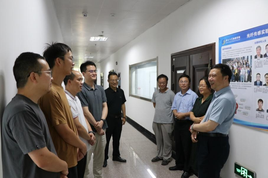 赖绍聪副校长走访慰问了白晋涛、谢长建、赵立臣、何院耀四位教授,对他们为学科建设和学校发展做出的贡献表示衷心感谢和崇高敬意,勉励大家要持续发挥示范引领作用,在本职岗位上再立新功。同时,深入光纤传感实验室,了解实验室最新工作进展和的科研情况,看望慰问了由乔学光教授领衔的光纤传感研究团队,勉励大家协作攻关、再创佳绩。