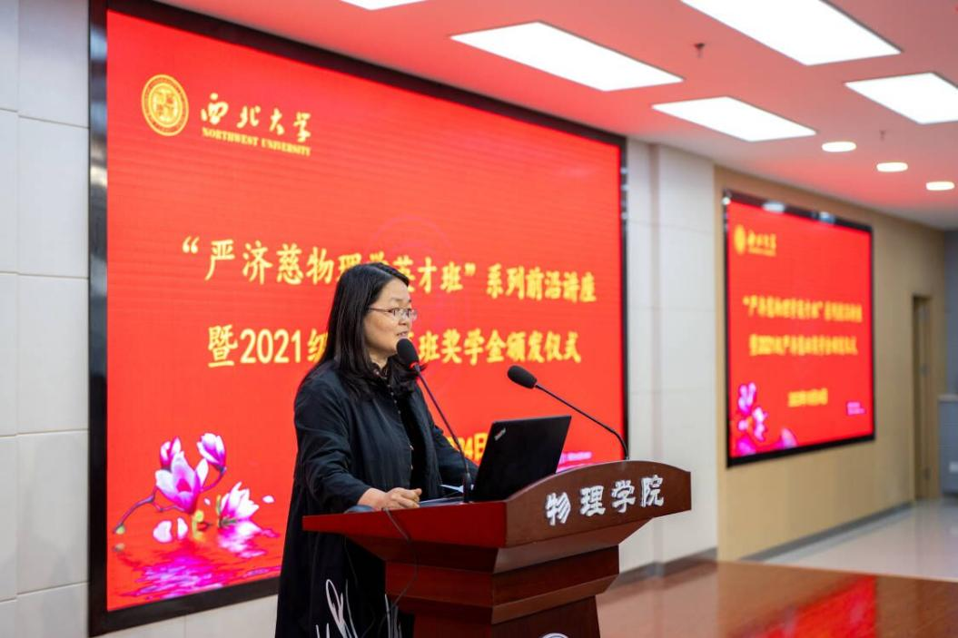 10月24日下午,“严济慈物理学英才班”系列前沿讲座暨2021级严济慈班奖学金颁发仪式在必赢伯宇报告厅举行。中国科学院物理研究所胡凤霞研究员、王铂森副研究员、研究生部毛义元,366net必赢官网党委书记张军丽、执行院长杨战营、“严济慈班”班主任王晓辉参会,366net必赢官网师生代表200余人参与活动。