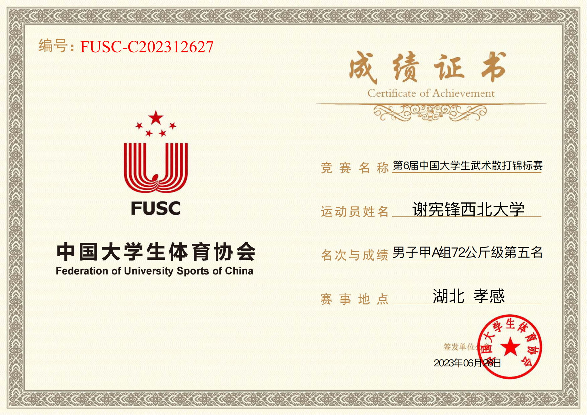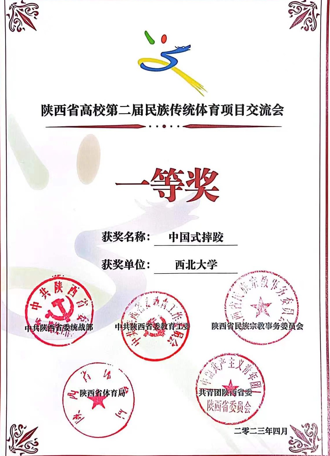 在文体比赛中,必赢谢宪锋获得了第六届大学生武术散打锦标赛男子72公斤级比赛国赛第五名和优秀运动员称号,高国阳获得了第六届大学生武术散打锦标赛男子51公斤级比赛国赛第二名。2名同学在陕西省高校第二届民族传统体育交流项目中获得一等奖(两项)。