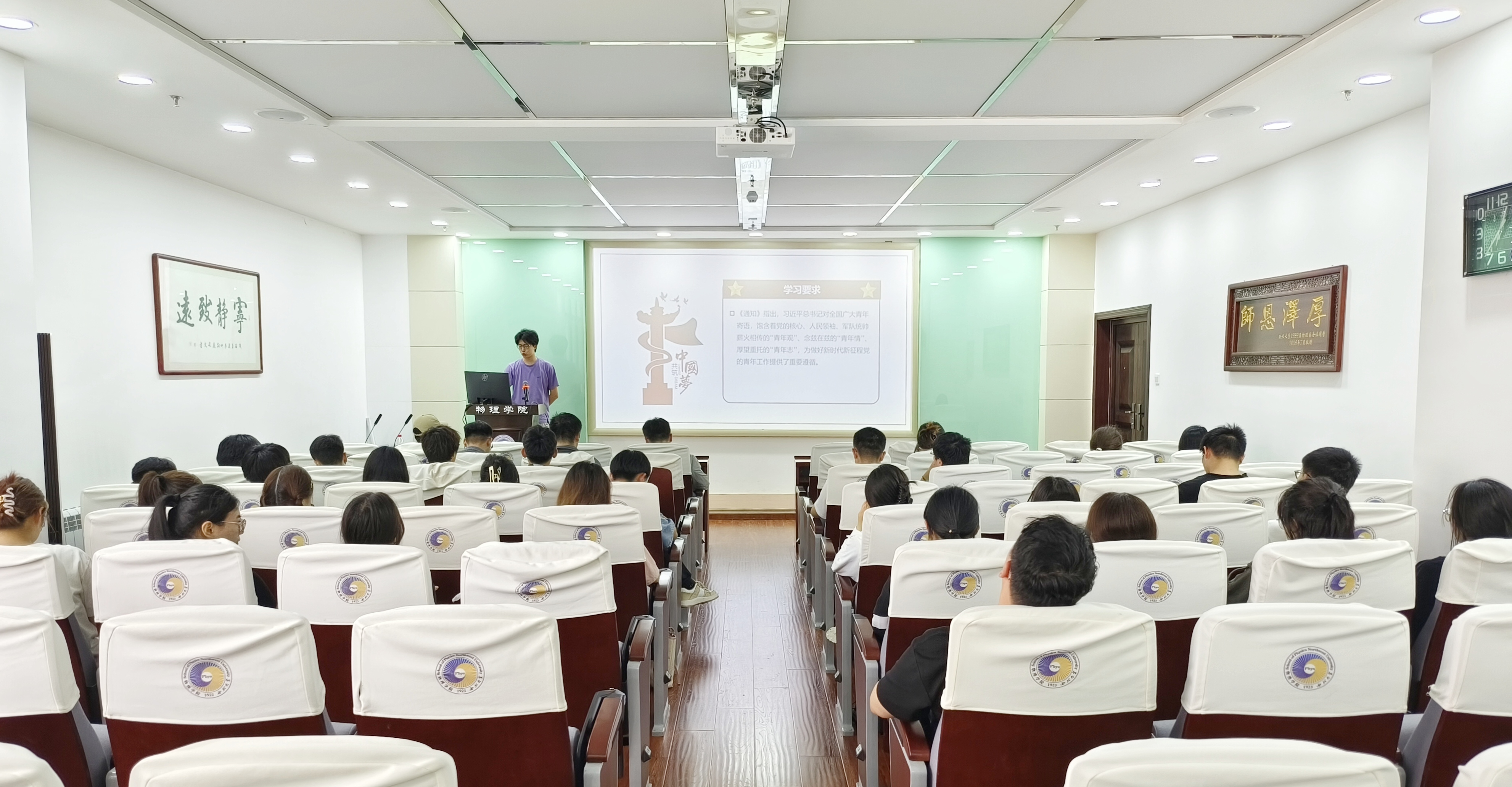 学院团委组织建设部李春滈领学习近平总书记的寄语。习近平总书记在五四青年节寄语全国广大青年,强调了青年一代在实现中华民族伟大复兴中国梦中的历史责任与使命,充分肯定了广大青年在新时代新征程上展现出的自信自强和刚健有为。大家共同深入探讨了如何有效地在青年群体中广泛传播这一精神,纷纷表示将会牢记习近平总书记对全国广大青年的殷切嘱托,在学习中不断汲取精神力量、明确方向,着力当好党的忠实助手和可靠后备军。