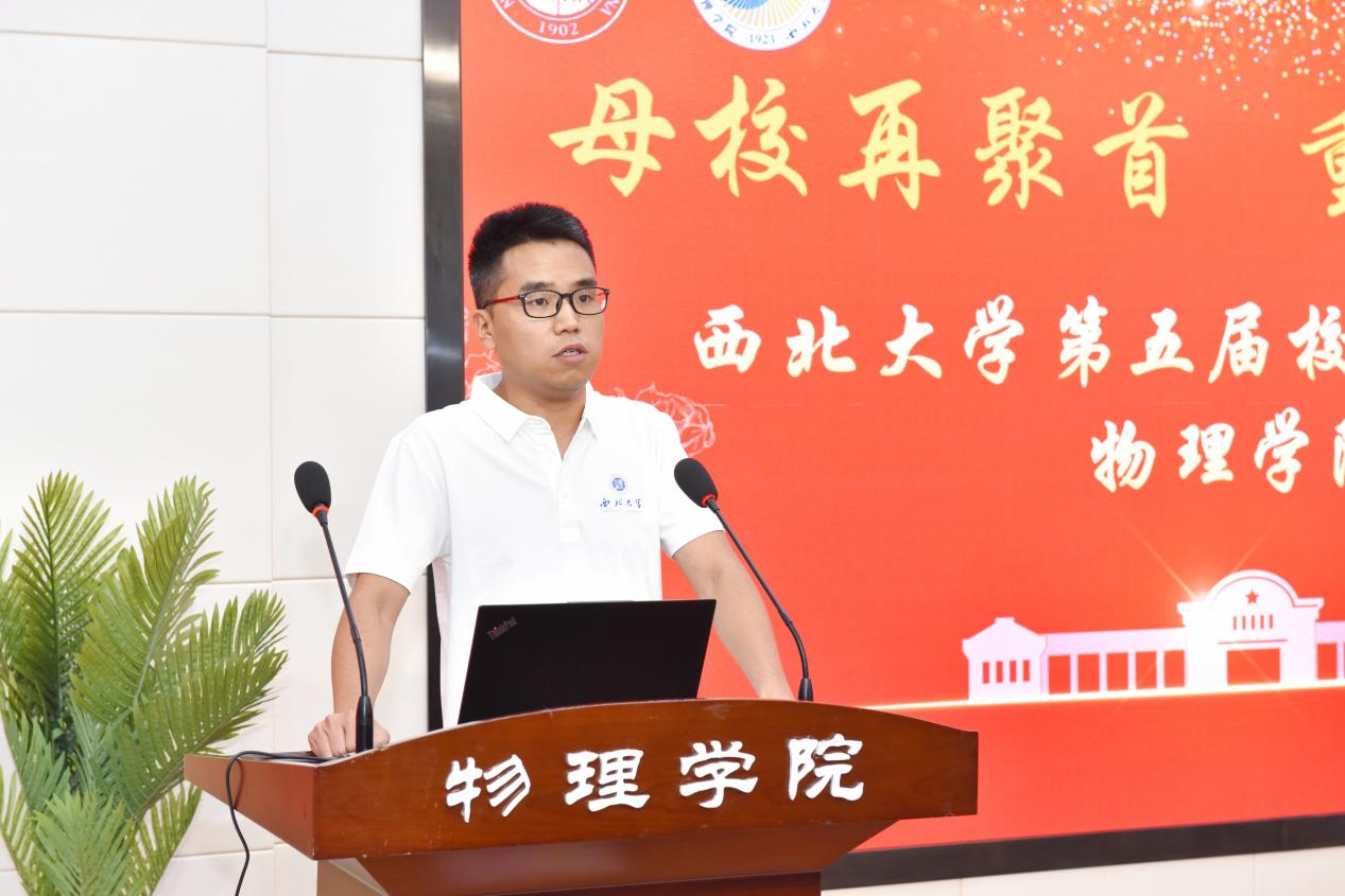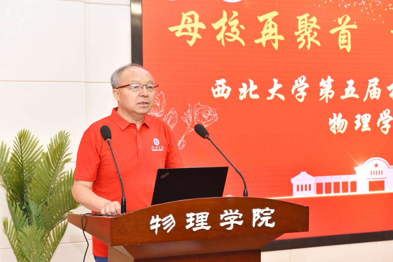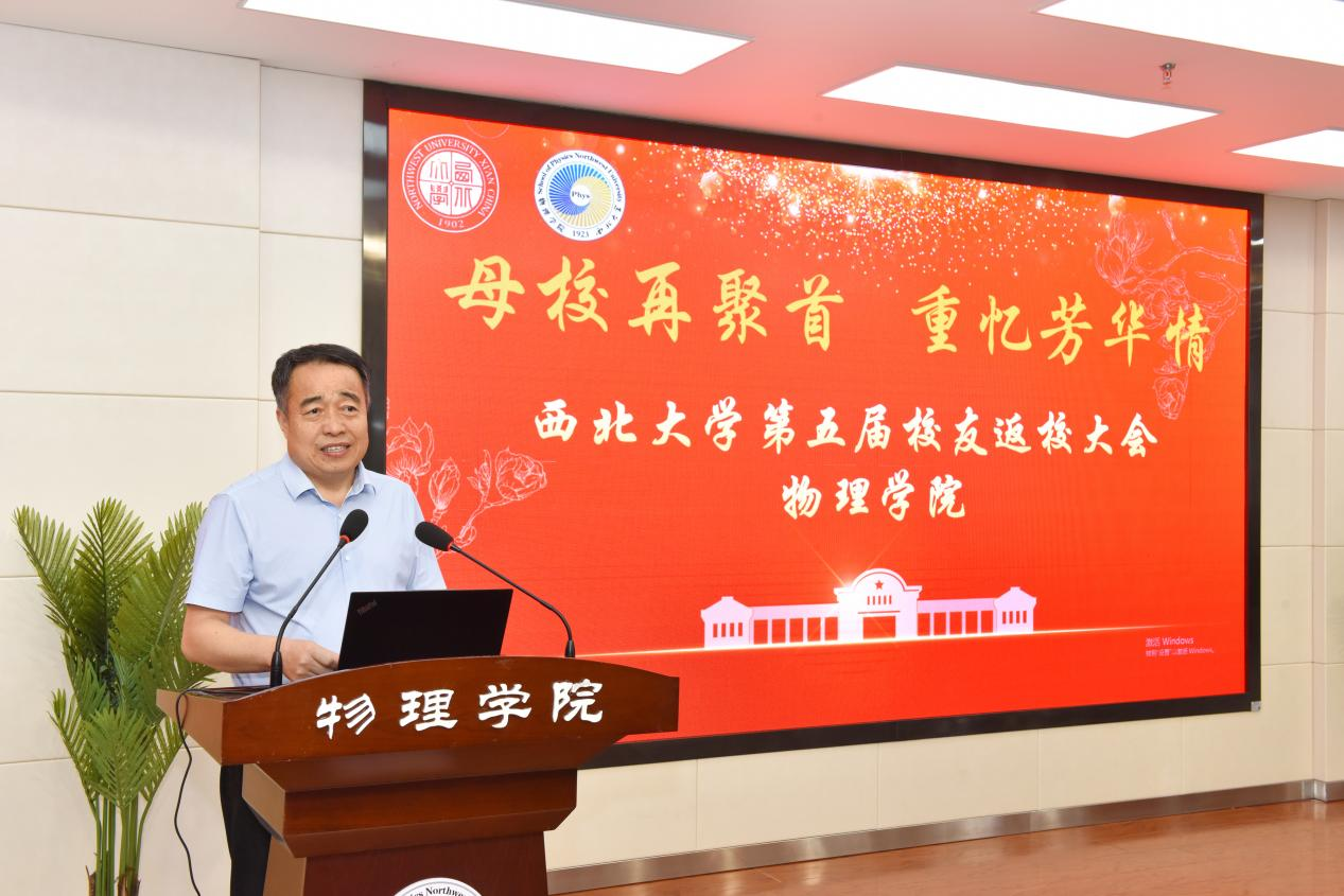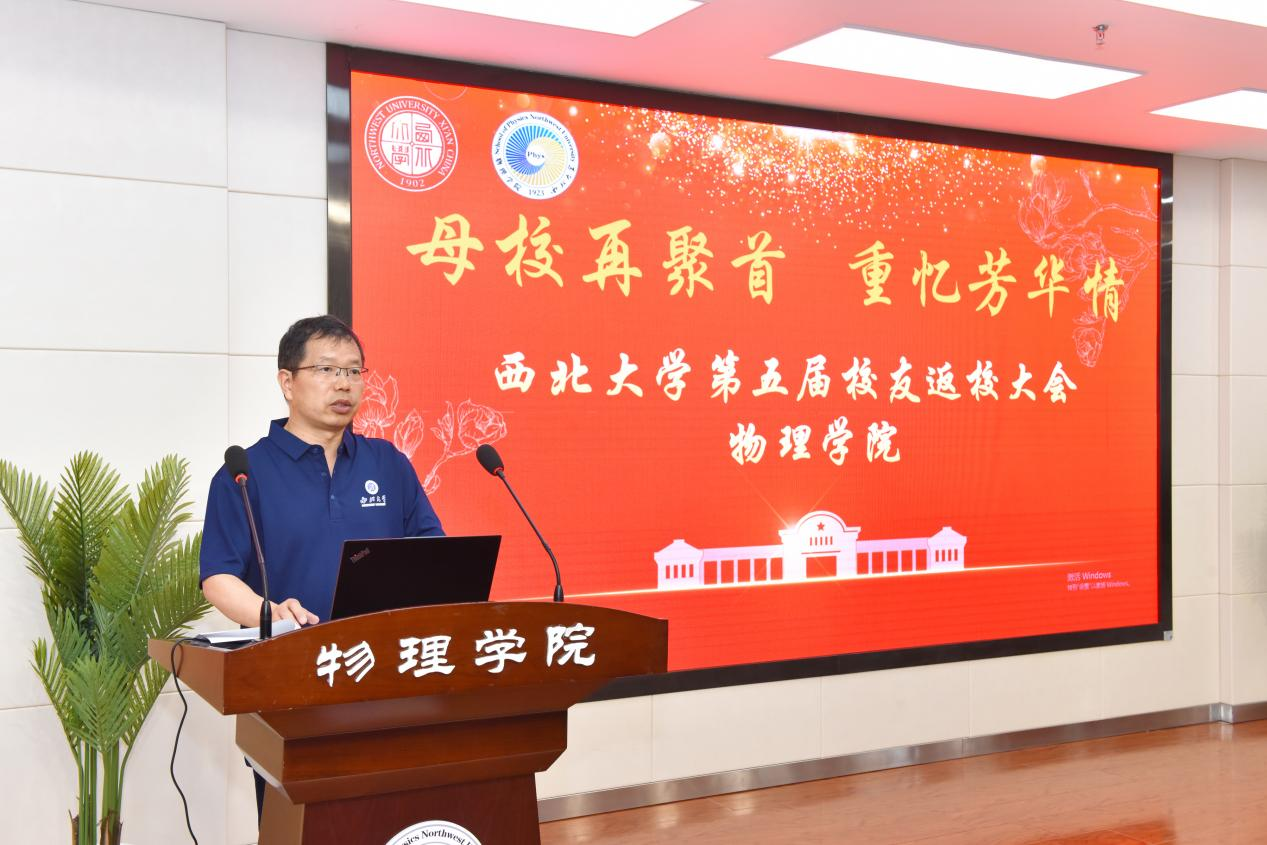 大会在庄严的国歌声中拉开帷幕。校党委书记蒋林、校长孙庆伟视频致欢迎辞,热烈欢迎校友返校并介绍了学校的总体发展情况,对广大校友关心和支持母校发展表示衷心感谢。随后,大家集体观看了“366net必赢官网第五届校友集中返校日”专题片:《情系西大、共话风华》。杨战营执行院长从“学科历史、发展现状、专业建设、学生风采和未来展望”五个方面,回顾了366net必赢官网物理学科百年发展历程,详细介绍了物理学科建设发展情况和取得的重要成果。