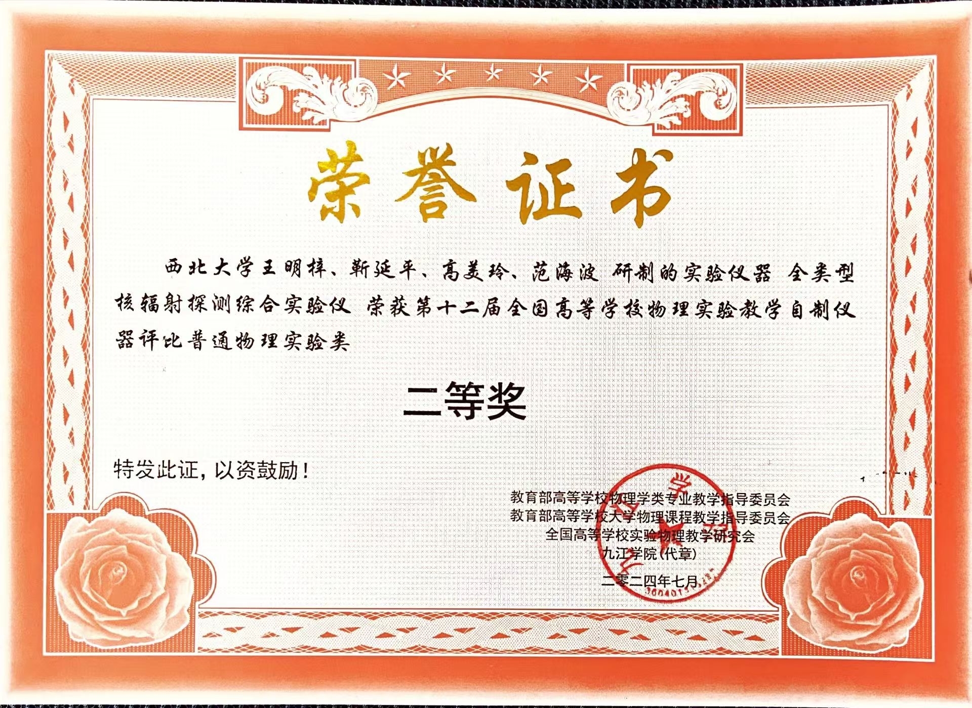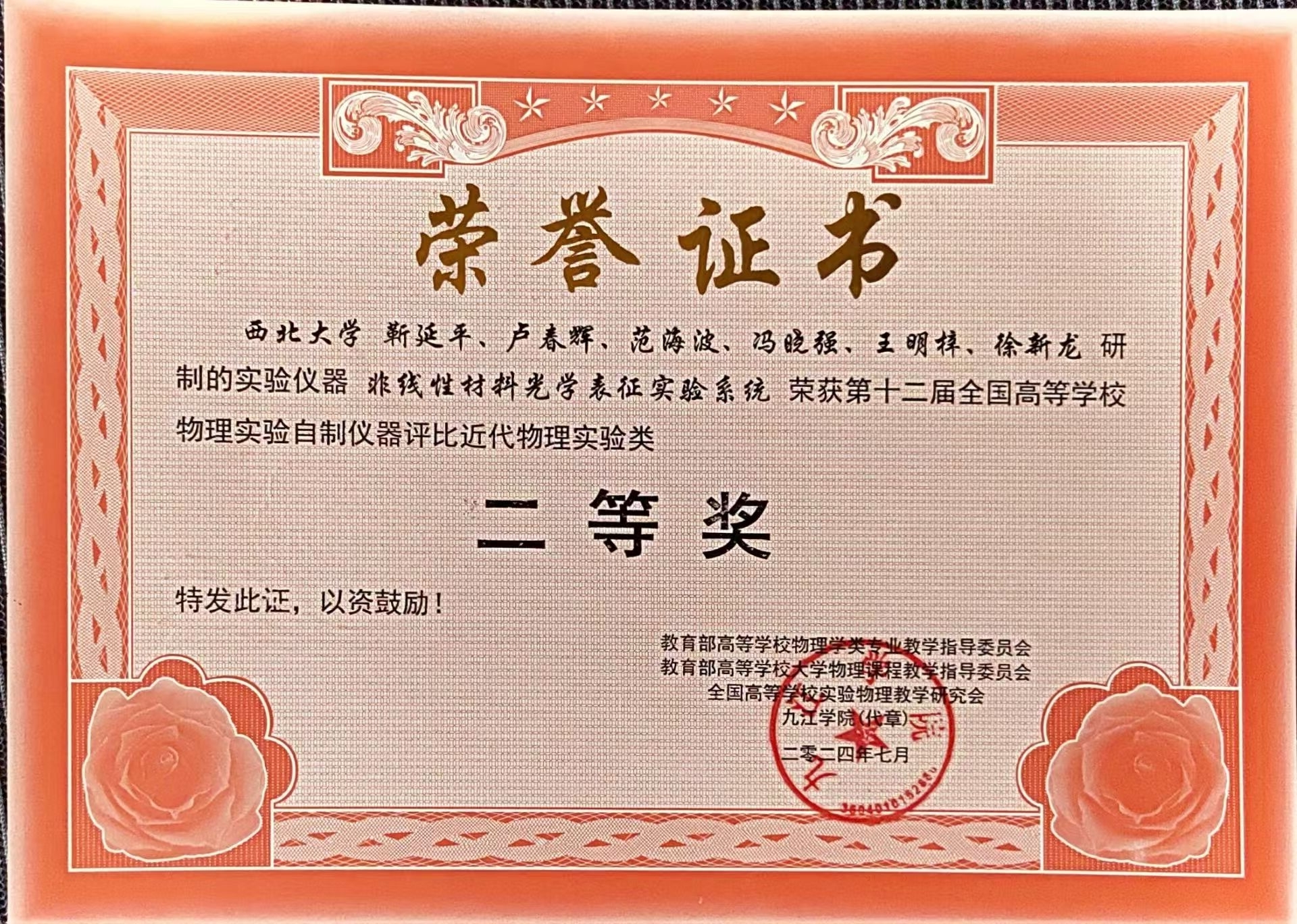经过前期精心准备,我校师生向大会提交了参赛作品,并参加了现场评比。通过全国初评-复评-终评层层选拔,最终靳延平老师主持的“非线性材料光学表征实验系统”和王明梓老师主持的“全类型核辐射探测综合实验仪”均获得自制仪器评比全国二等奖,薛馨怡和陈文辉分别提交的研究论文“Type-I SnSe2/ZnS heterostructure improving photoelectrochemical photodetection and water splitting”和“A new S-scheme heterojunction of 1D ZnGa2O4/ZnO nanofiber for efficient photocatalytic degradation of TC-HCl”分别荣获本科生科研论文评比三等奖。