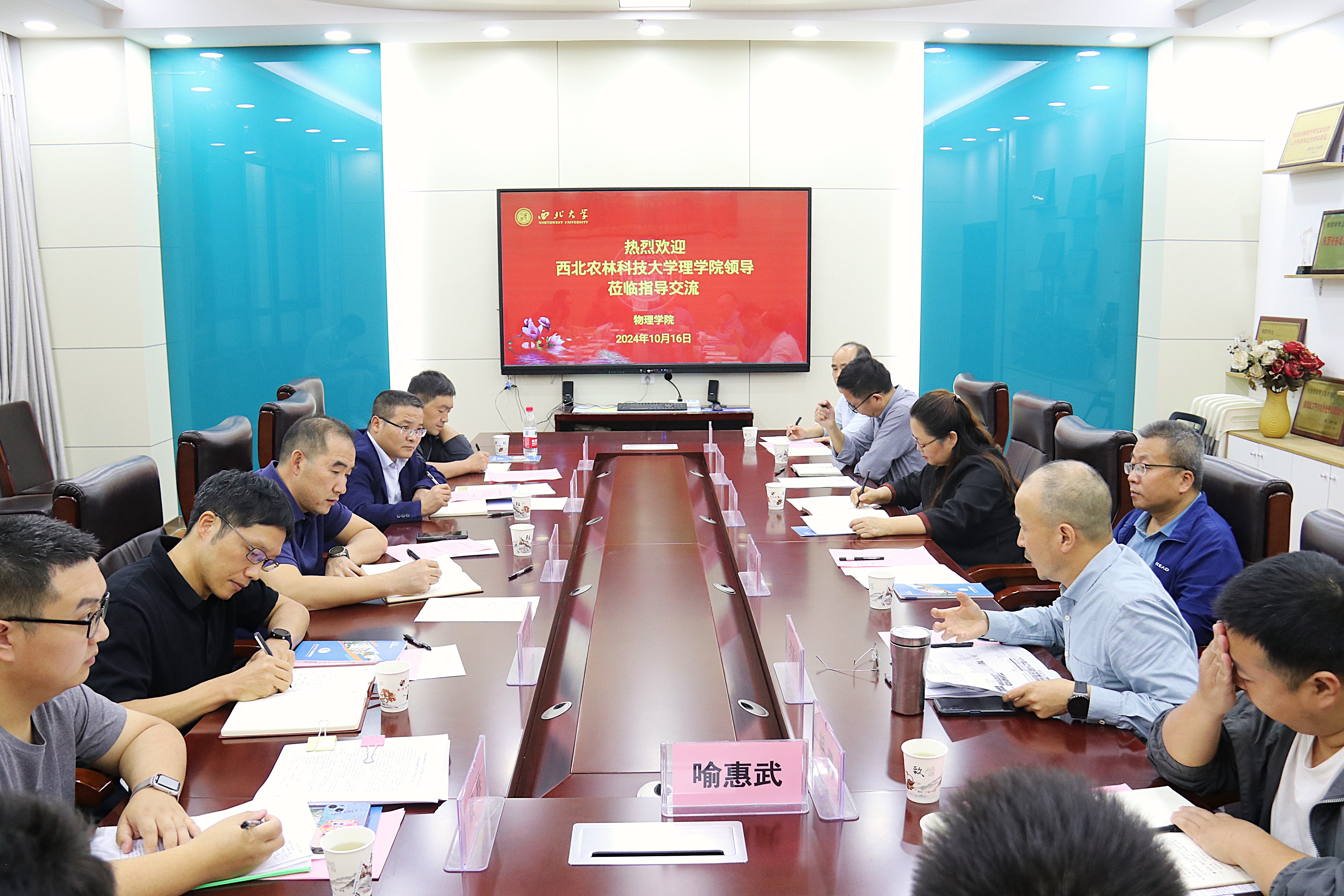 10月16日上午,西北农林科技大学理学院副院长解迎革一行5人来必赢调研交流。学院党委书记张军丽、执行院长杨战营、院长助理、实验教学中心主任、系主任及教师代表参加座谈。座谈会由张军丽书记主持。