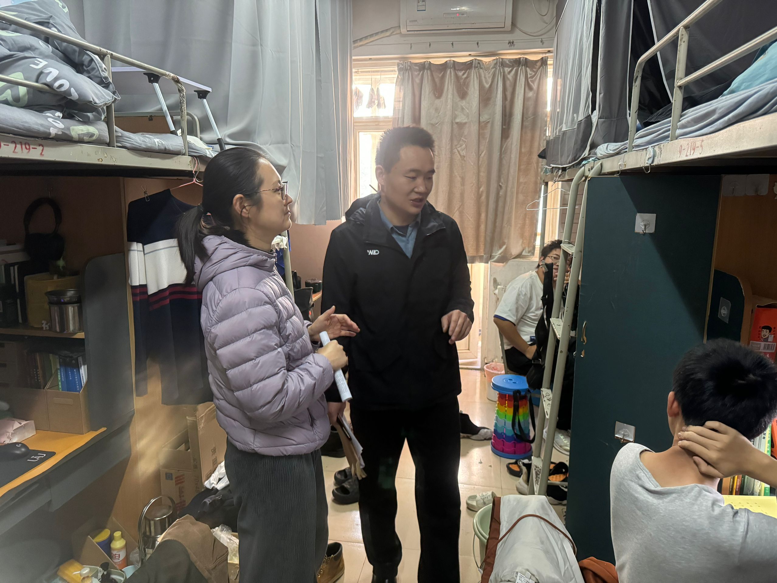 在检查的同时,老师们还亲切地与同学们交流,询问他们在宿舍生活中遇到的困难和问题,倾听他们的意见和建议。在毕业生宿舍,老师们还积极了解毕业生升学准备情况、当前求职情况等,叮嘱同学们做好心态调适,有需要及时联系学院。通过这种面对面的沟通方式,不仅增进了师生之间的相互理解和信任,也让学生们更加深刻地认识到宿舍安全和心理健康的重要性。