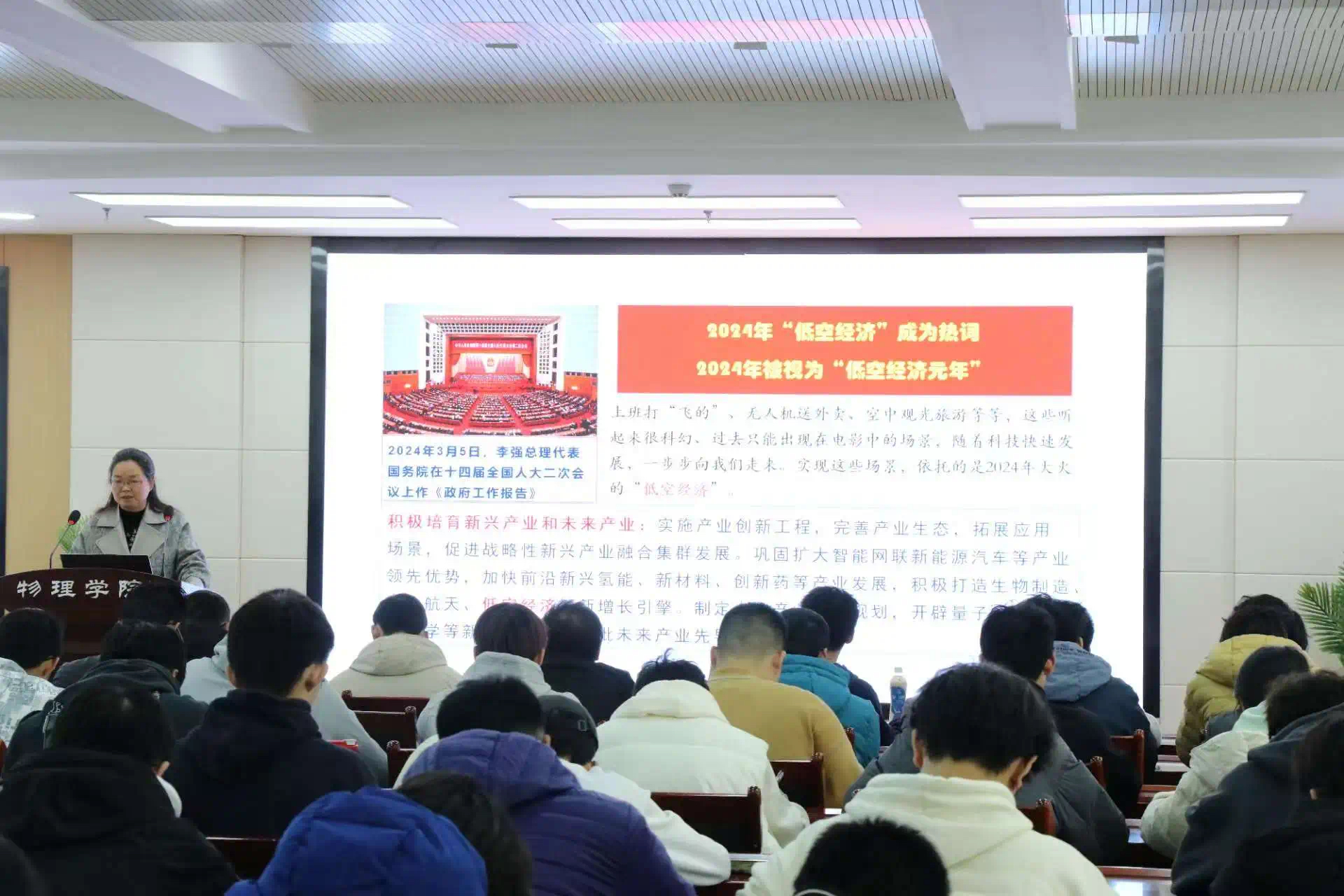 张军丽书记首先向同学们介绍了此次思政课的主题由来。她指出,2024年被视为“低空经济元年”,十四届全国人大二次会议《政府工作报告》中强调,要积极培育新兴产业和未来产业,打造生物制造、商业航天、低空经济等新增长引擎;二十届三中全会《决议》中提出,要建立未来产业投入增长机制,发展通用航空和低空经济。一系列政策的出台表明,低空经济正以前所未有的发展态势成长为新的增长引擎,将引领一场前所未有的现实变革。