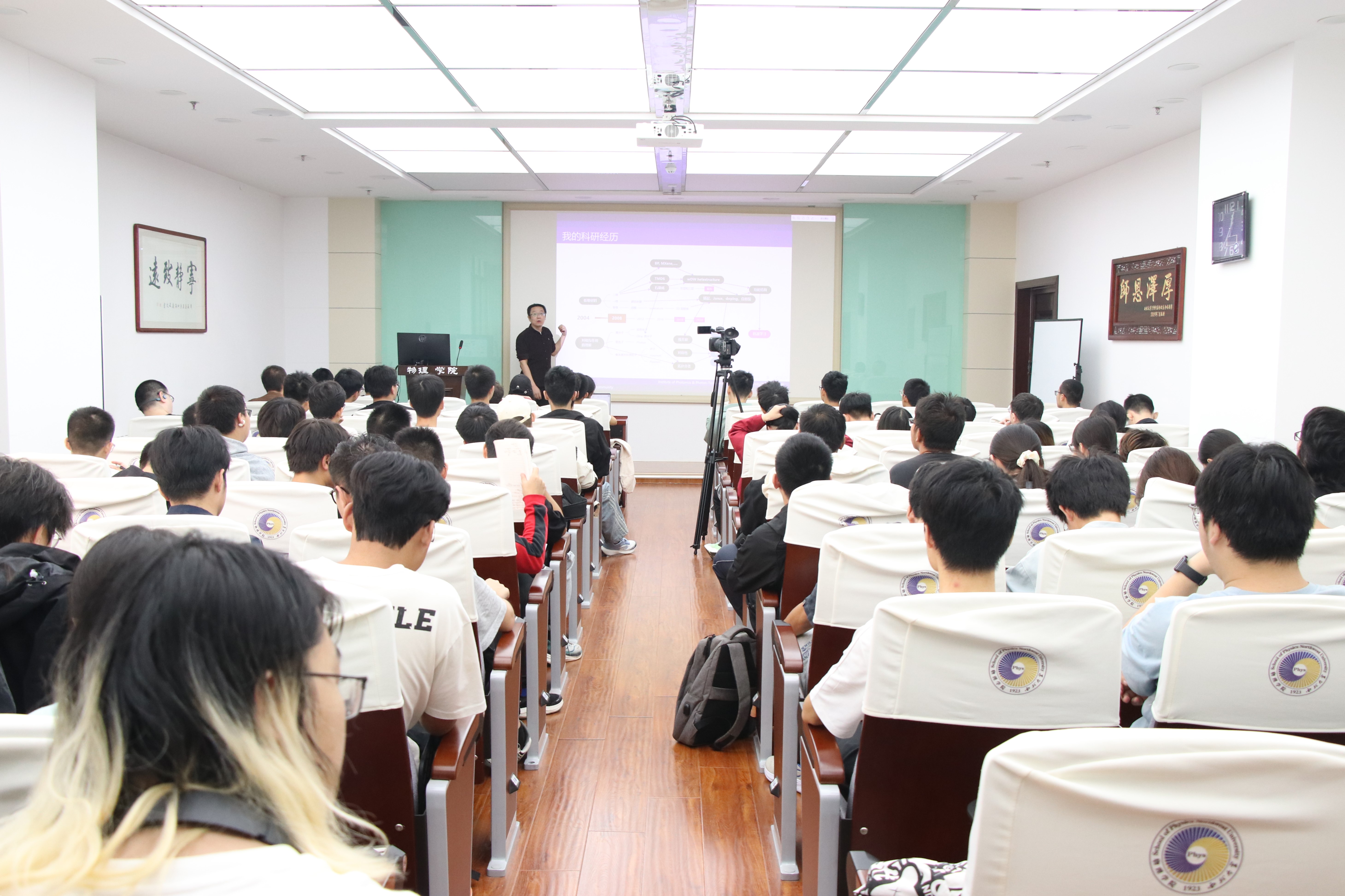 9月26日中午,王晓辉教授开展了题为“量子电池研究与本科生科研训练”的讲座。他在讲座中首先提出了自己对本科生科研训练的设想,接着从这一设想指导下成立的“量子信息小组”为例子,展示了曾在小组中交流过的学长学姐们如何在量子信息小组训练提升自己的科研能力、前往何处继续深造,以及在量子信息小组交流过程中产出的论文和其影响力。接着又展示了目前正在研究的量子电池方面有哪些成果,最后呼吁大家如有能力可以找自己喜欢的方向进行初步的科研训练。此次讲座让同学们对量子电池研究方面有了大致了解,且对本科生如何进行科研训练及其益处有了初步的认识。