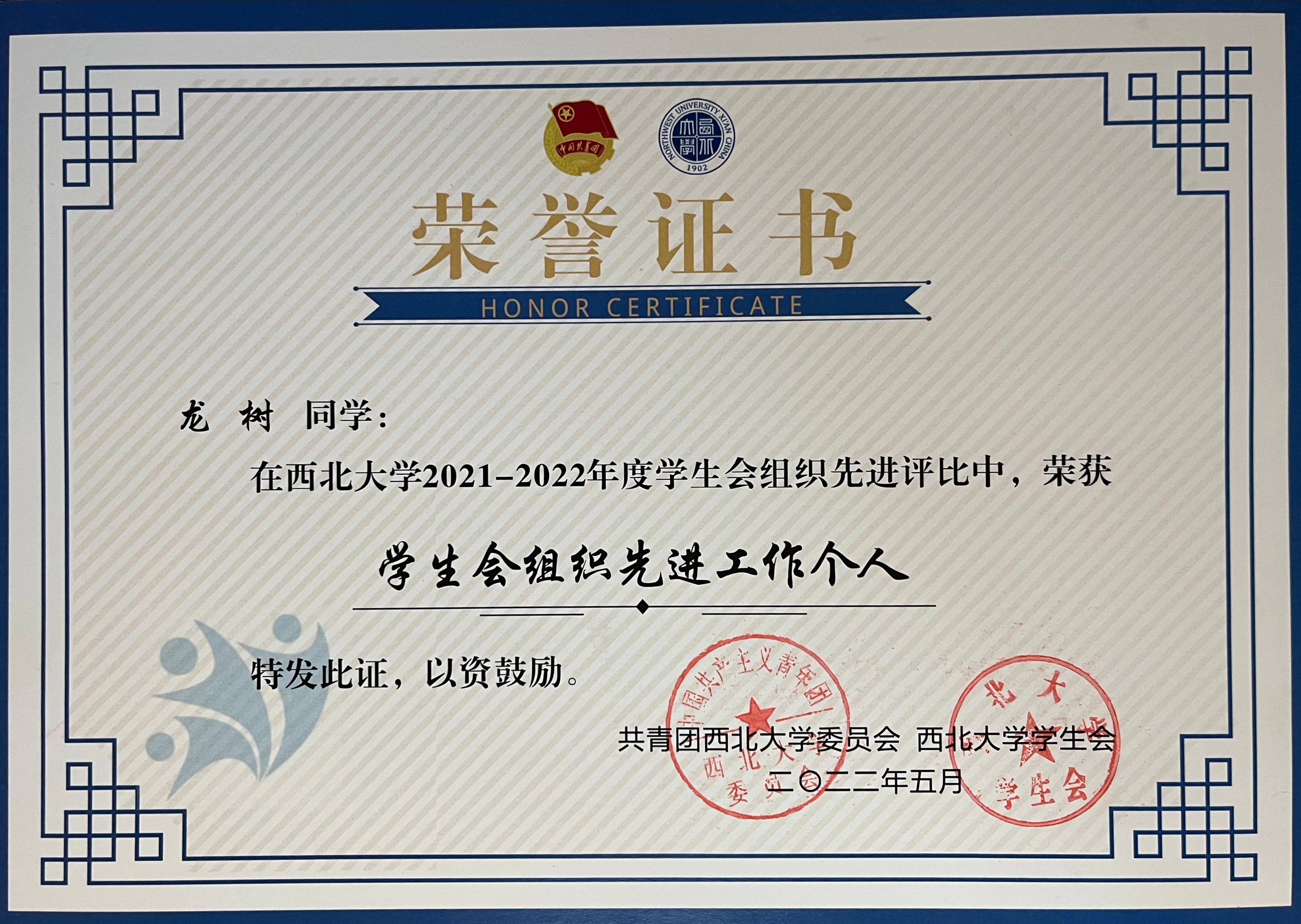 龙树不仅在学业和科研上追求卓越,还积极参加学生工作、文体活动和志愿服务活动。在担任学生会部门负责人和班委期间,他尽职尽责,充分发挥了自己的组织才能和团队精神。除此之外,龙树还积极参与多次参加社会公益活动,用实际行动传递爱心和正能量。他表示,无论是参与志愿服务还是从事学生工作,他都将其视作为同学服务的机会,同时在过程中不断提升自身能力。他热爱运动,既是学校羽毛球队的成员,也曾担任学院羽毛球队的负责人,获得过数十次各类体育比赛的奖项。在他看来,参与体育活动既能强身健体,同时也能让他在紧张的学习氛围中得到舒缓,从而摆脱压力。