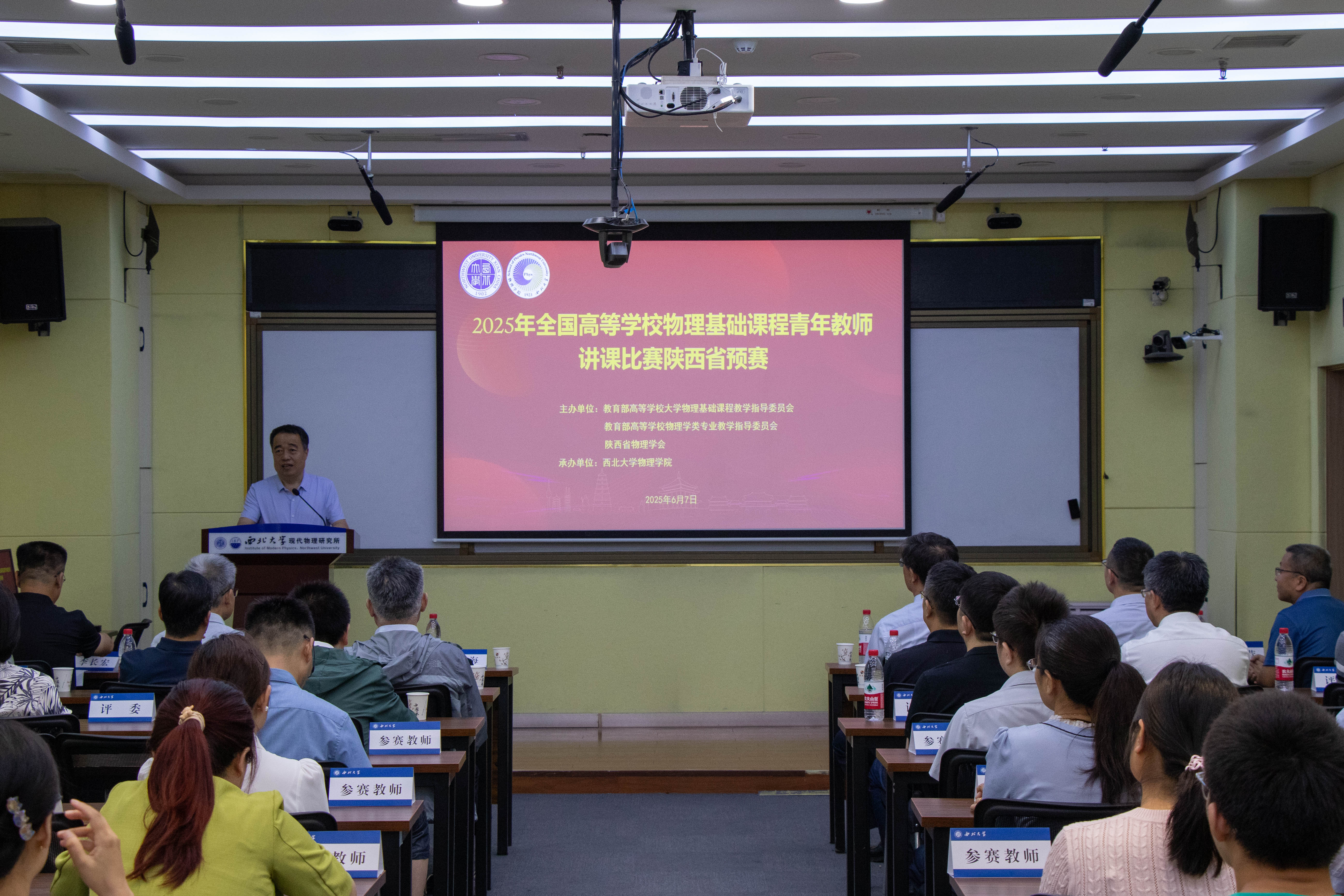 6月7日,由教育部高等学校大学物理基础课程教学指导委员会、教育部高等学校物理学类专业教学指导委员会和陕西省物理学会主办,我校366net必赢官网承办的2025年全国高等学校物理基础课程青年教师讲课比赛陕西省预赛在我校长安校区举办。本次比赛吸引了来自全省十九所高校的19位优秀青年教师同台竞技。我校党委常委、副校长李振海,陕西省物理学会理事长白晋涛,大学物理课程教指委西北地区工作委员会常务副主任、陕西省物理学会秘书长、西安交通大学366net必赢官网院长高宏,我校教务处相关负责人出席开幕式,开幕式由我校366net必赢官网负责人主持。