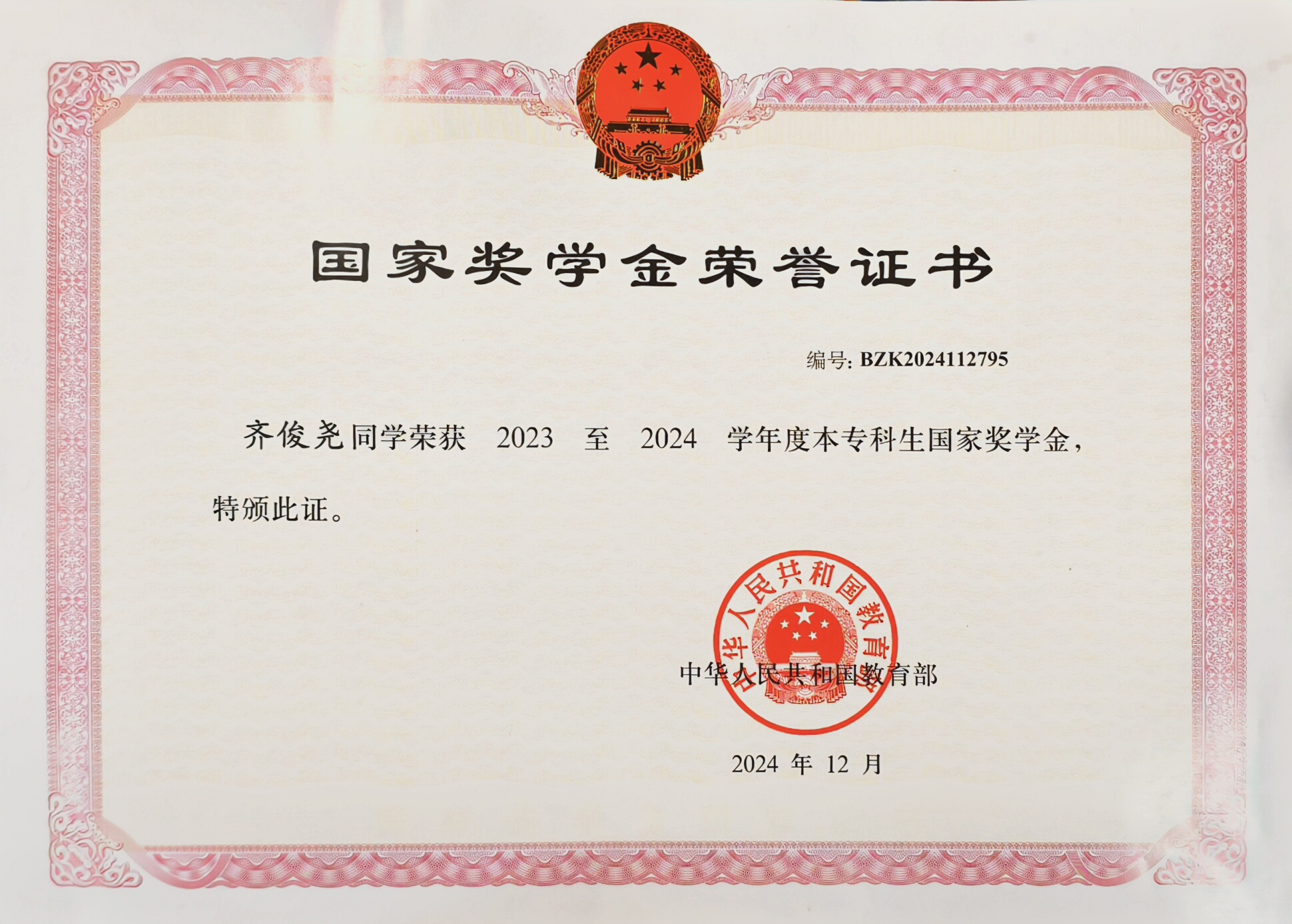 齐俊尧,男,共青团员,陕西汉中人,2021级材料物理专业,366net必赢官网2025届优秀本科毕业生。前三学年学业成绩专业第二,曾获2023-2024学年国家奖学金、连续三年获366net必赢官网校级一等奖学金、湑水河奖学金、2022-2024学年主持国家级大创项目“碳基介质浆料的开发及其在光电能源器件中的应用”并获优秀结题、2023年全国大学生物理实验竞赛国赛一等奖、西北赛区一等奖、2022年第十四届全国大学生数学竞赛(非数学类)省二等奖、获优秀共青团员、学生会组织先进工作个人等荣誉称号。曾担任366net必赢官网学生会主席团成员、材料物理班班委。现已推免至西安交通大学微电子学院。