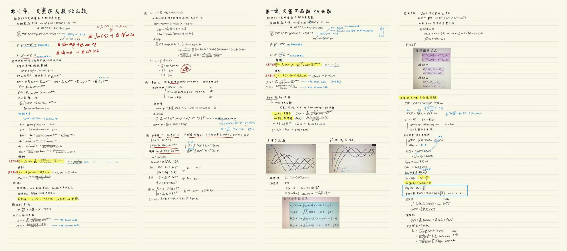 在大学求学过程中,张朴专注于课堂笔记的整理和总结,他的笔记不仅包括授课教师的核心讲授内容,还包含课后习题解答和总结。不同于追求 “刷题技巧”,他更注重课堂效率,课上用不同颜色笔记区分重点与疑问,课后通过习题集逐章巩固,四年累积的各科笔记成为他最珍贵的学习资料。除了整理课堂笔记,张朴还会对阅读过的文献整理其中的内容,有不懂的问题立刻解决,这进一步提高了他的知识水平,养成了良好的学术习惯。