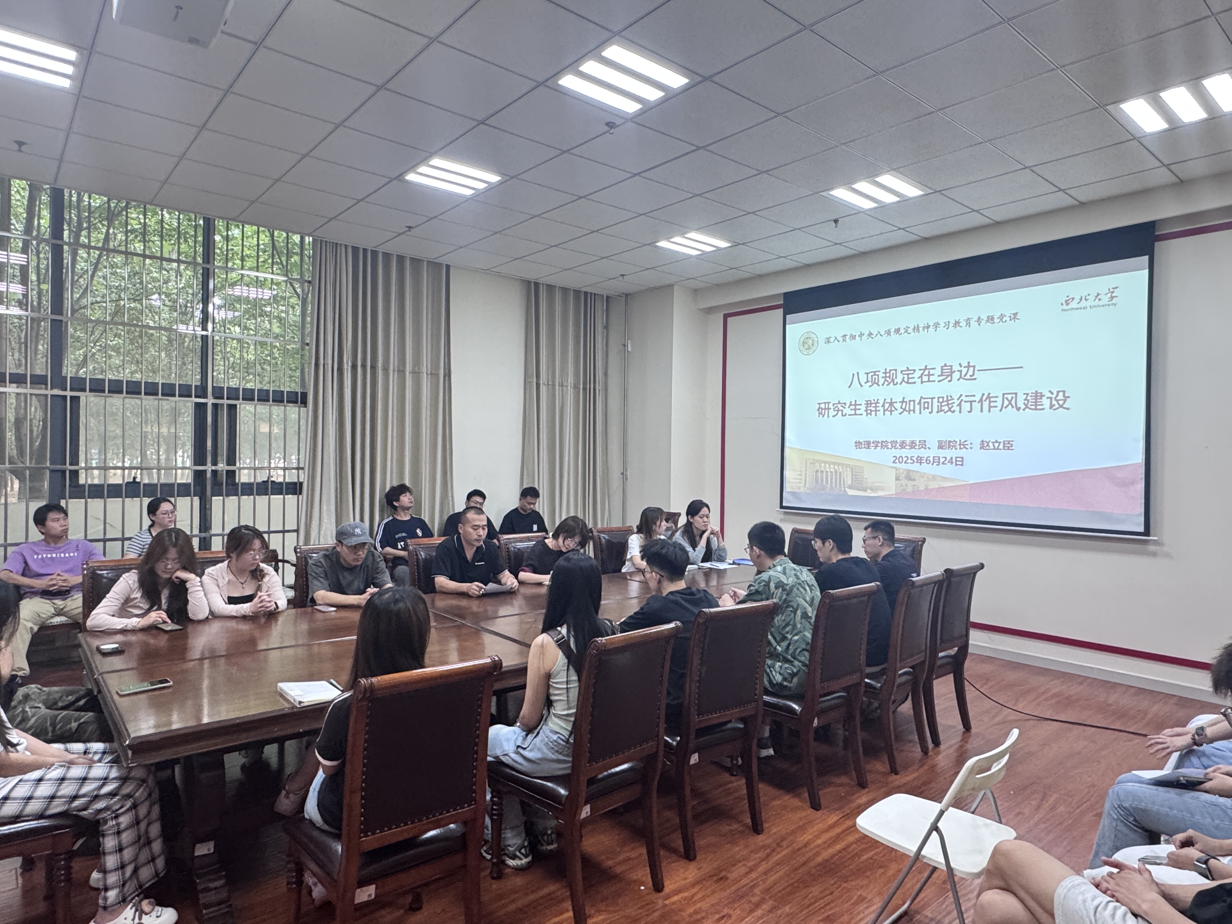 为推进深入贯彻中央八项规定精神学习教育走深走实,持续强化师生党员纪律意识和作风建设,6月下旬,必赢党委委员为联系支部师生党员讲授专题党课,全体党员参与了此次学习。