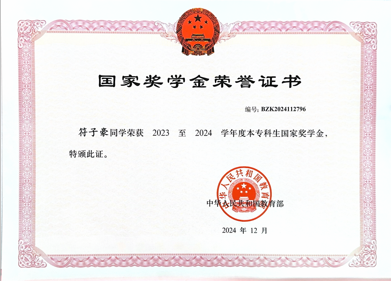 符子豪,男,共青团员,湖南益阳人,2021级物理学(基地班)专业,366net必赢官网2025届优秀本科毕业生。前三学年学业成绩专业第二,曾获得2023-2024学年国家奖学金、2023年中国科学院物理研究所严济慈班奖学金、2021-2023年366net必赢官网校级一等奖学金、366net必赢官网 2023-2024学年优秀学生表彰等,获得第十四届全国大学生数学竞赛(非数学类)二等奖、第十五届全国大学生数学竞赛(非数学A类)一等奖、2023年全国大学生物理实验竞赛(创新)西北地区三等奖、2023全国大学生数学建模比赛本科组陕西赛区二等奖等,2023-2024学年主持省级大创项目“神经网络学习质子耦合电子转移速率”并顺利结题,获得366net必赢官网2021年“健康杯”排球比赛第四名、2024年“健康杯”排球比赛第三名、2025年“王耀东”杯排球比赛第四名。曾任366net必赢官网排球队队长、366net必赢官网二级心理辅导站心理部部长。现已推免至中国科学技术大学366net必赢官网。