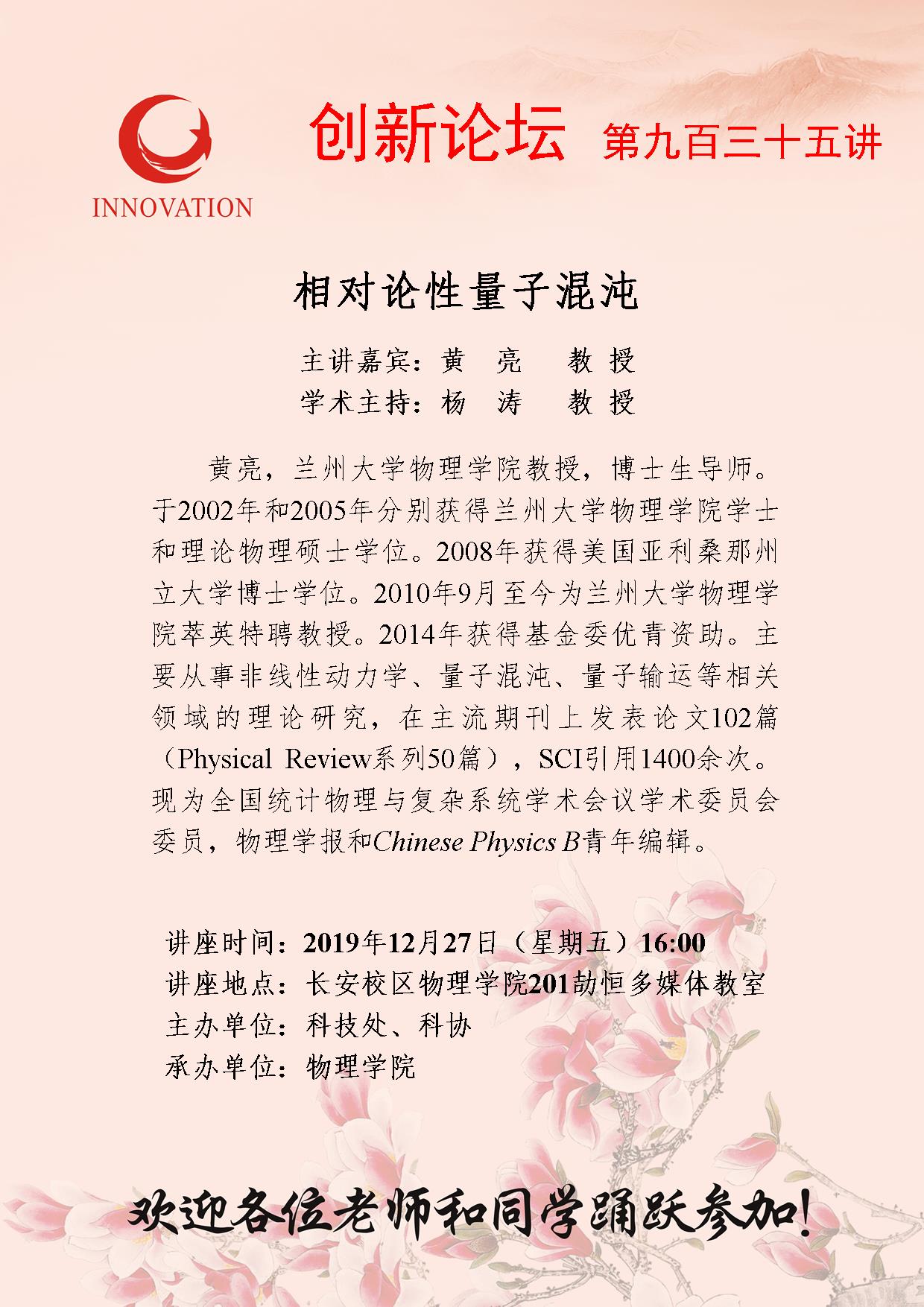创新论坛第九百三十五讲通知——相对论性量子混沌