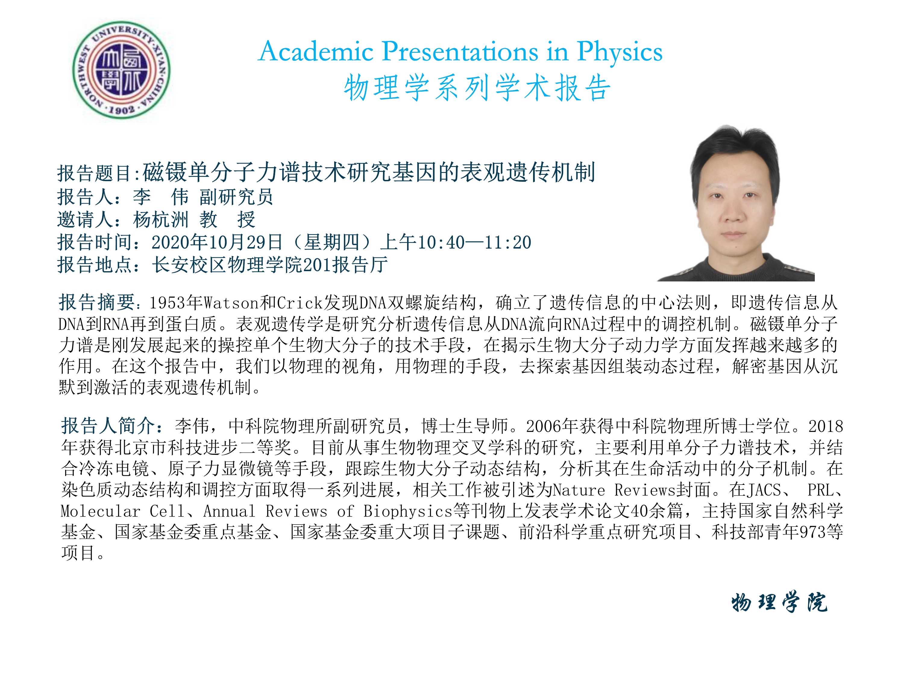 学术报告——磁镊单分子力谱技术研究基因的表观遗传机制