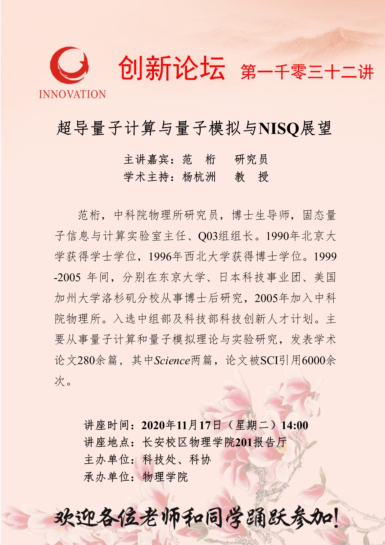 366net必赢官网创新论坛第一千零三十二讲——超导量子计算与量子模拟与NISQ展望