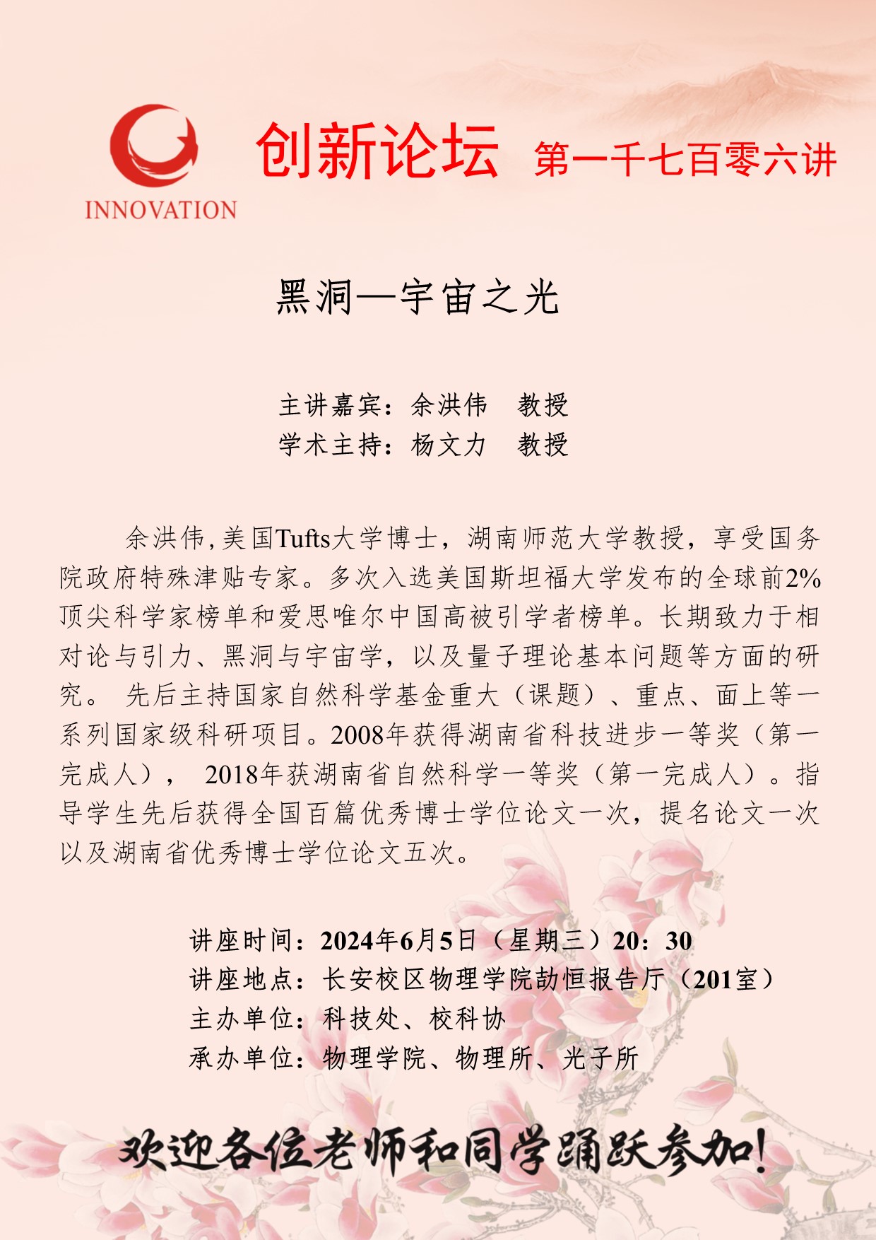 366net必赢官网创新论坛第一千七百零六讲:黑洞—宇宙之光