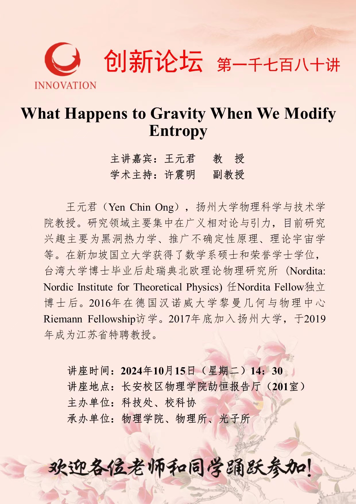366net必赢官网创新论坛第一千七百八十讲:What Happens to Gravity When We Modify Entropy