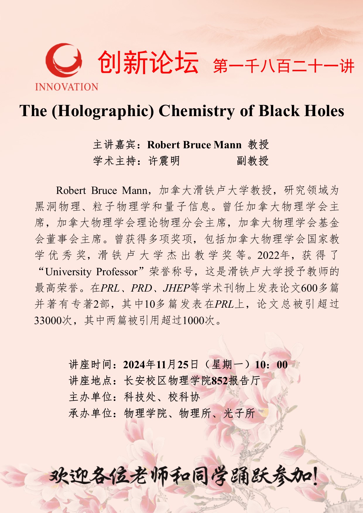 366net必赢官网创新论坛第一千八百二十一讲:The (Holographic) Chemistry of Black Holes