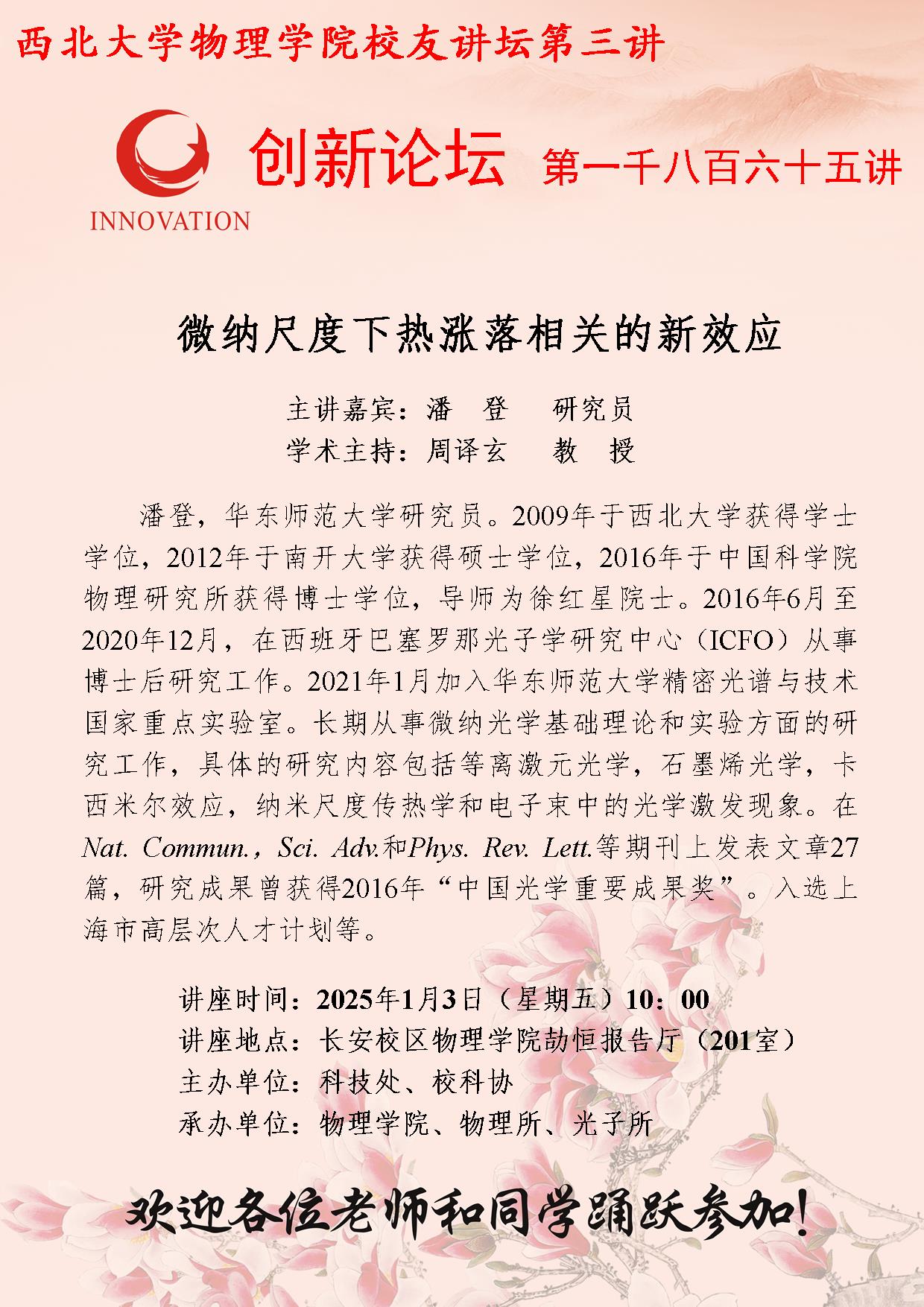 366net必赢官网创新论坛第一千八百六十五讲:微纳尺度下热涨落相关的新效应