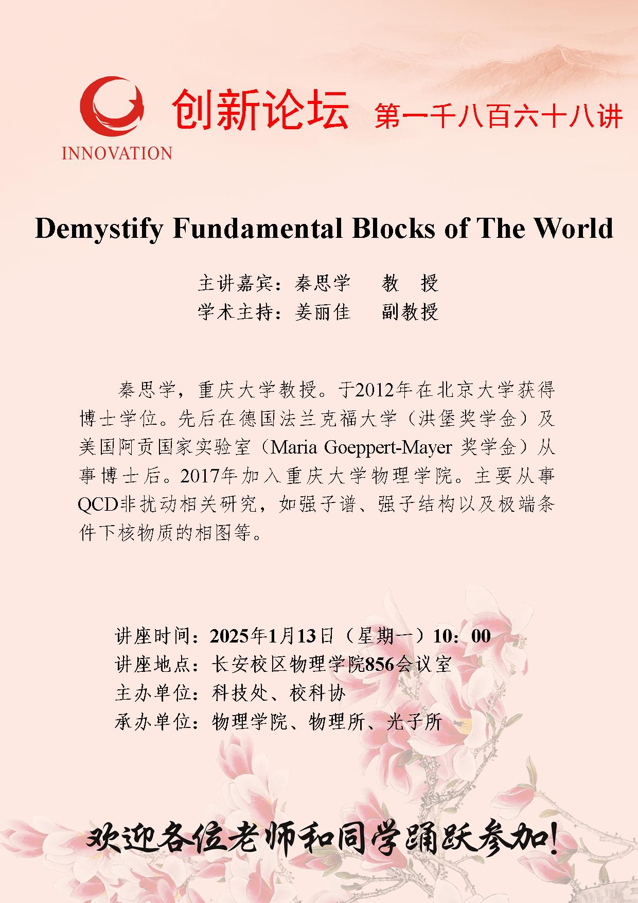 366net必赢官网创新论坛第一千八百六十八讲:Demystify Fundamental Blocks of The World