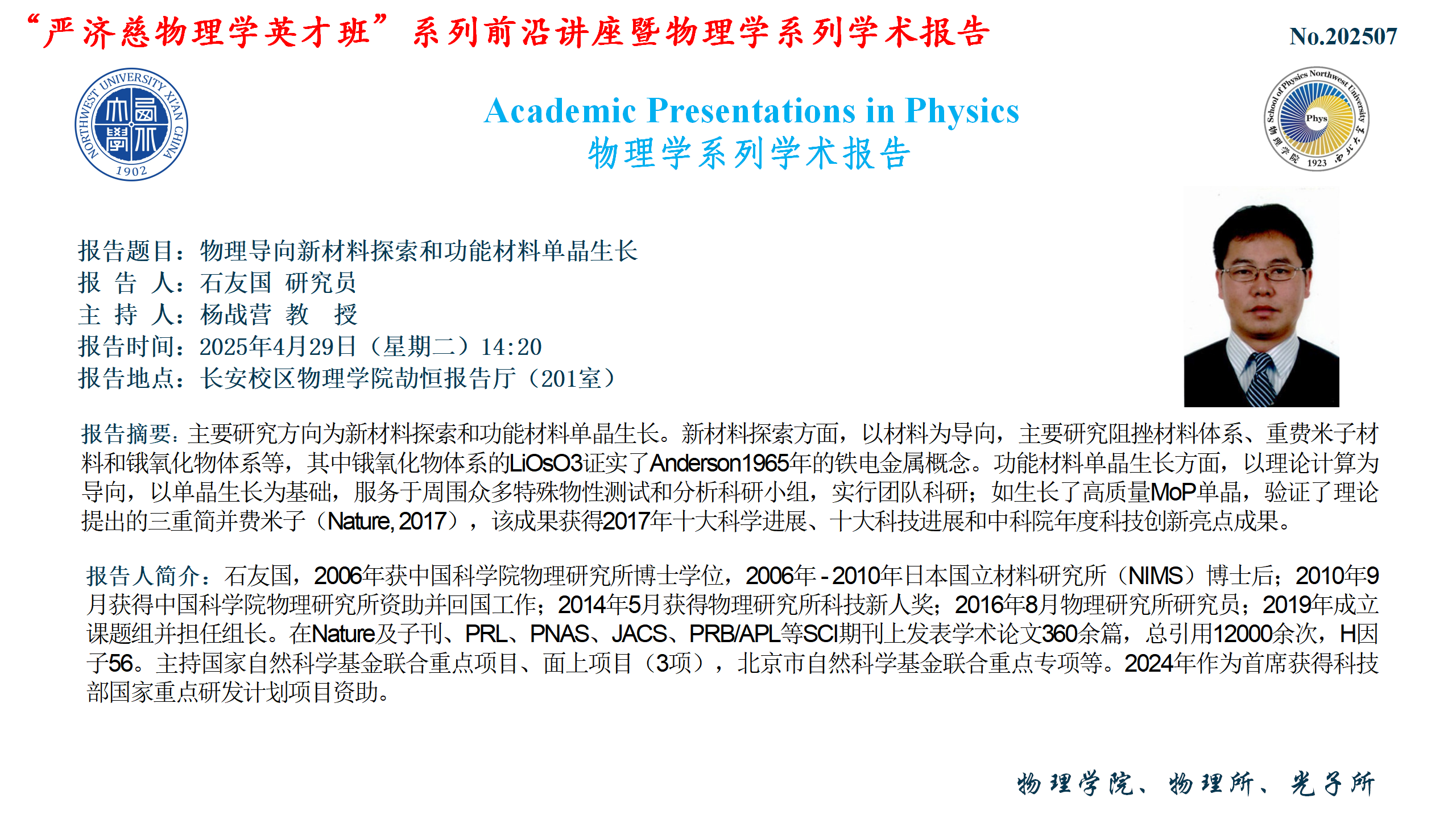 上一篇:“严济慈物理学英才班”系列前沿讲座暨物理学系列学术报告—...