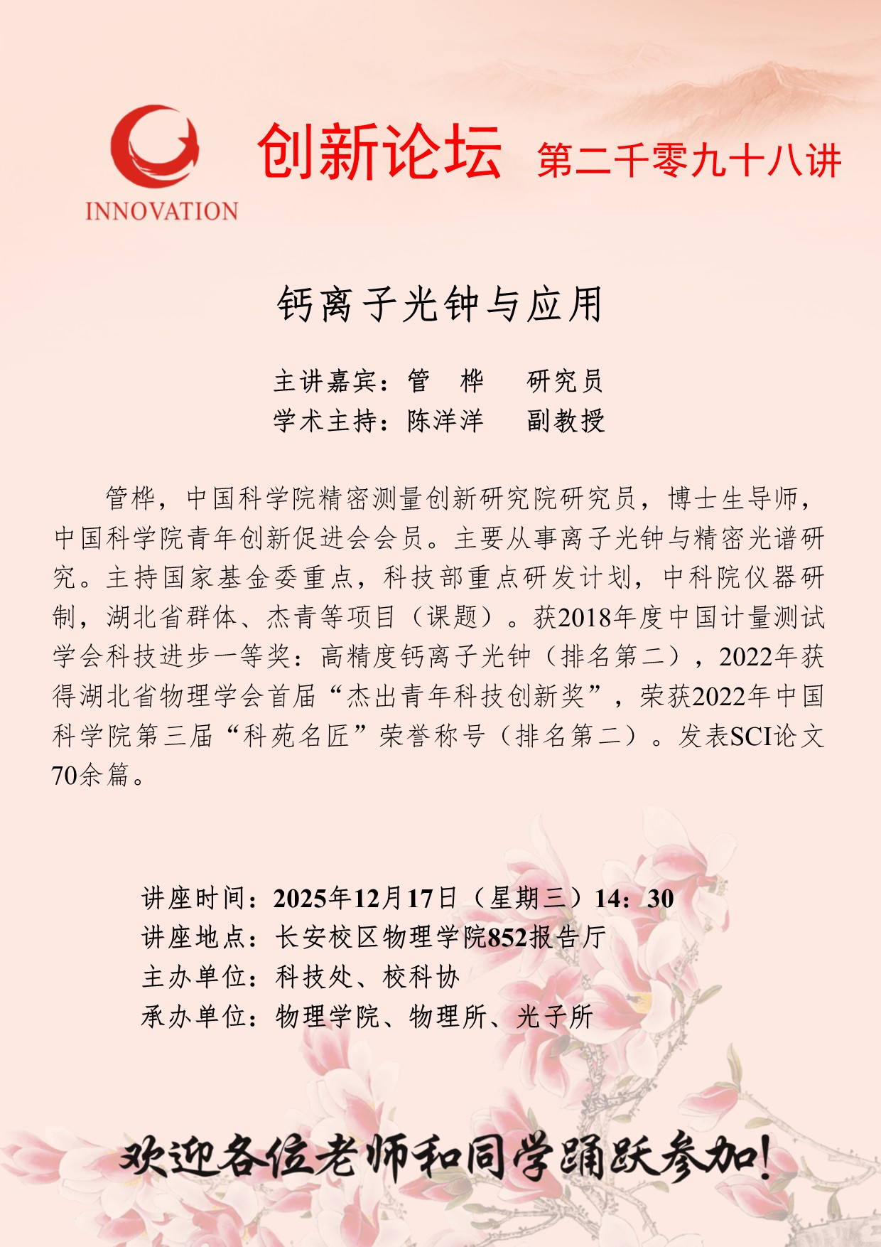 366net必赢官网创新论坛第二千零九十八讲:钙离子光钟与应用